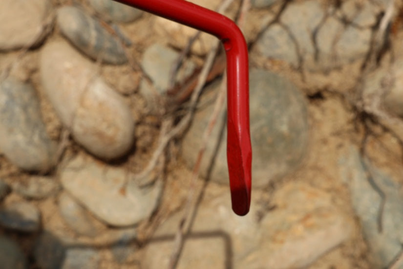 This tool made from 1/4" cold rolled steel. The tip has been hand forged and heat treated. Heat treating makes it hard so it will last a long time.
